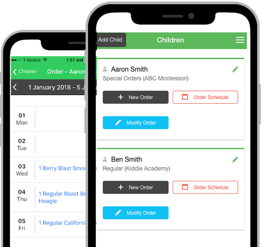 Our Mobile app is available for IOS and Android devices. Parents can place new orders and manage existing orders using our app. Use the app's notification feature to remind customers about upcoming ordering deadlines.